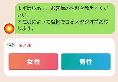 LAVAの店舗は女性専用スタジオと男女共用スタジオに分かれているので、性別を選択します。(上福岡店は女性専用)
