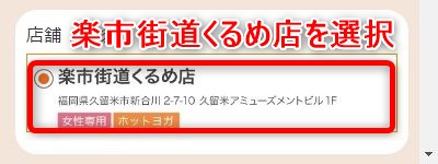 久留米市にある店舗が一覧で表示されるので、【楽市街道くるめ店】を選択。