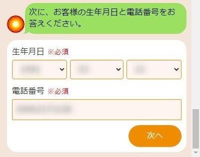 体験レッスンのプログラムを選択したら、次は個人情報の入力に進みます。